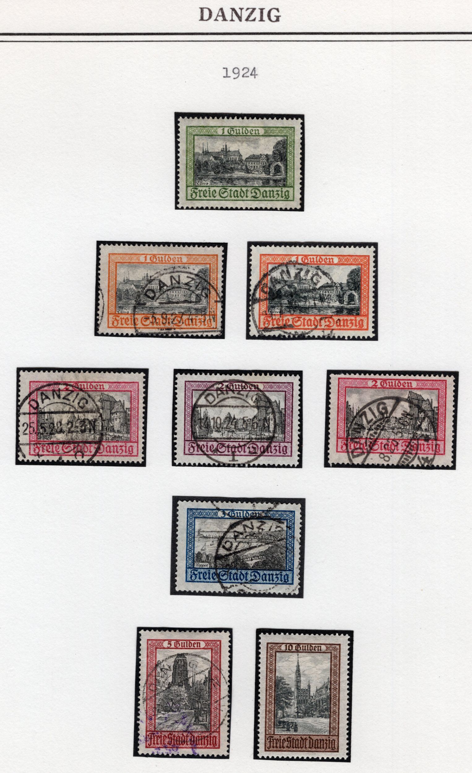 Danzig: 1924 Lot Large Format Definitive Stamps Mostly Used