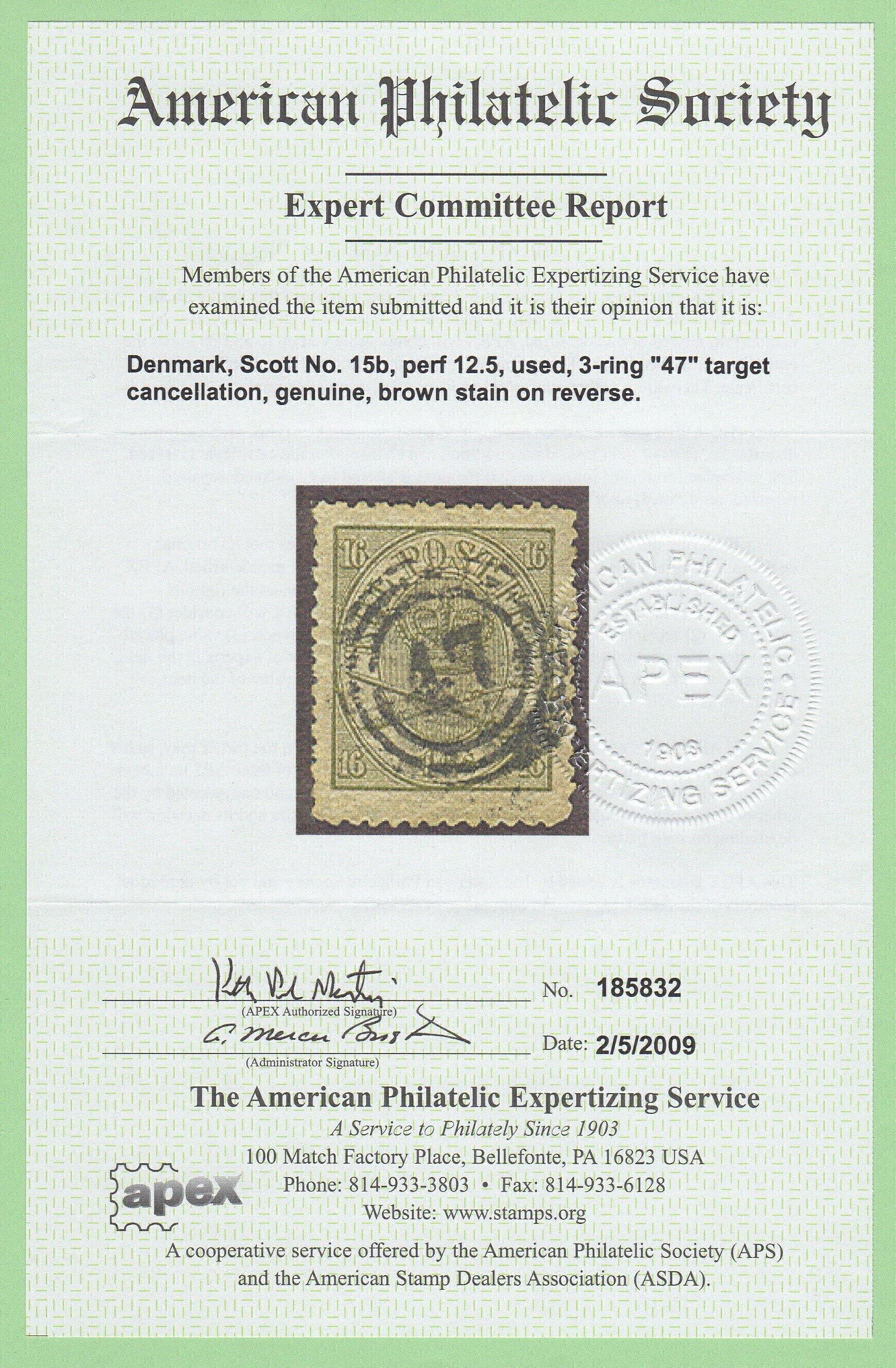 2026 SCV $1450.00 (I) "47" (Nykjobing, Falster) in conc. circs. w / backside stn w / APS cert Most recent price reduction 01-01-2026 by Registered Mail only