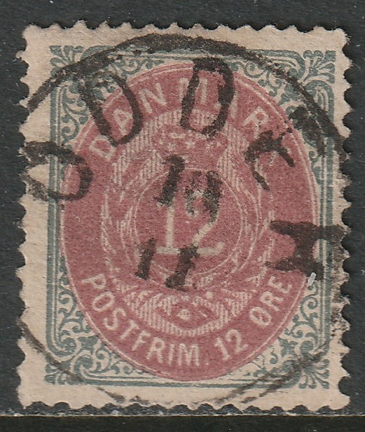 Denmark 1875 Sc 29 used Odder CDS - please see scan.