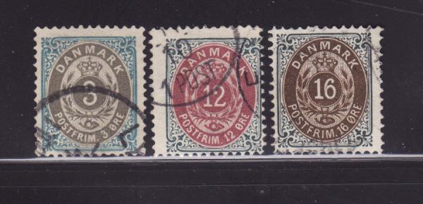 Denmark Scott Catalog Number: 41B, 46A-47A Condition: USED Topic: NUMERALS I AM A MEMBER OF THE APS MEMBER NUMBER 194802. Total Satisfaction Is Always Guaranteed.