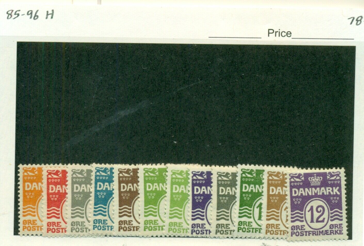 DENMARK #85-96, Mint Hinged, Scott $78.00 We will combine shipping on multiple wins/purchases Email us with any questions. Visit our Hip STORE. CONDITION: All stamps are genuine and without faults and all mint s ... Read More