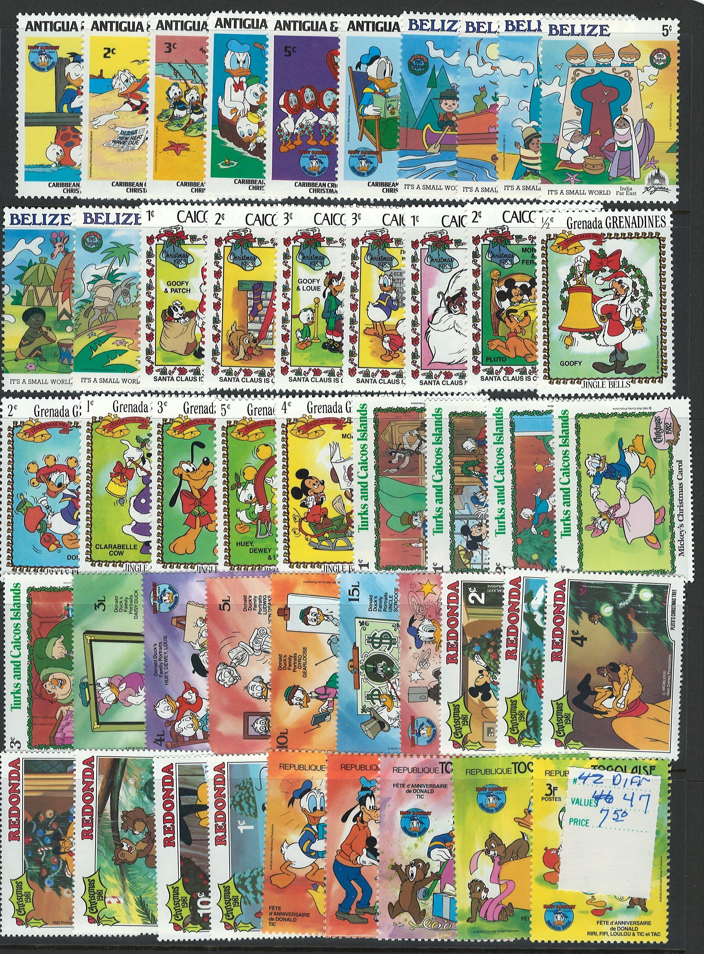 Disnet Characters 47 Different All MNH!