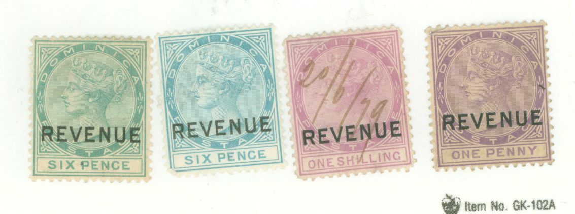 1877 Revenue stamps WMK 1 (1p violet is wmk2) 6p blue is NG, 1 shilling is used APS Stamp Id: 501726020 APS Seller Id: 622678 Hinge Type: H