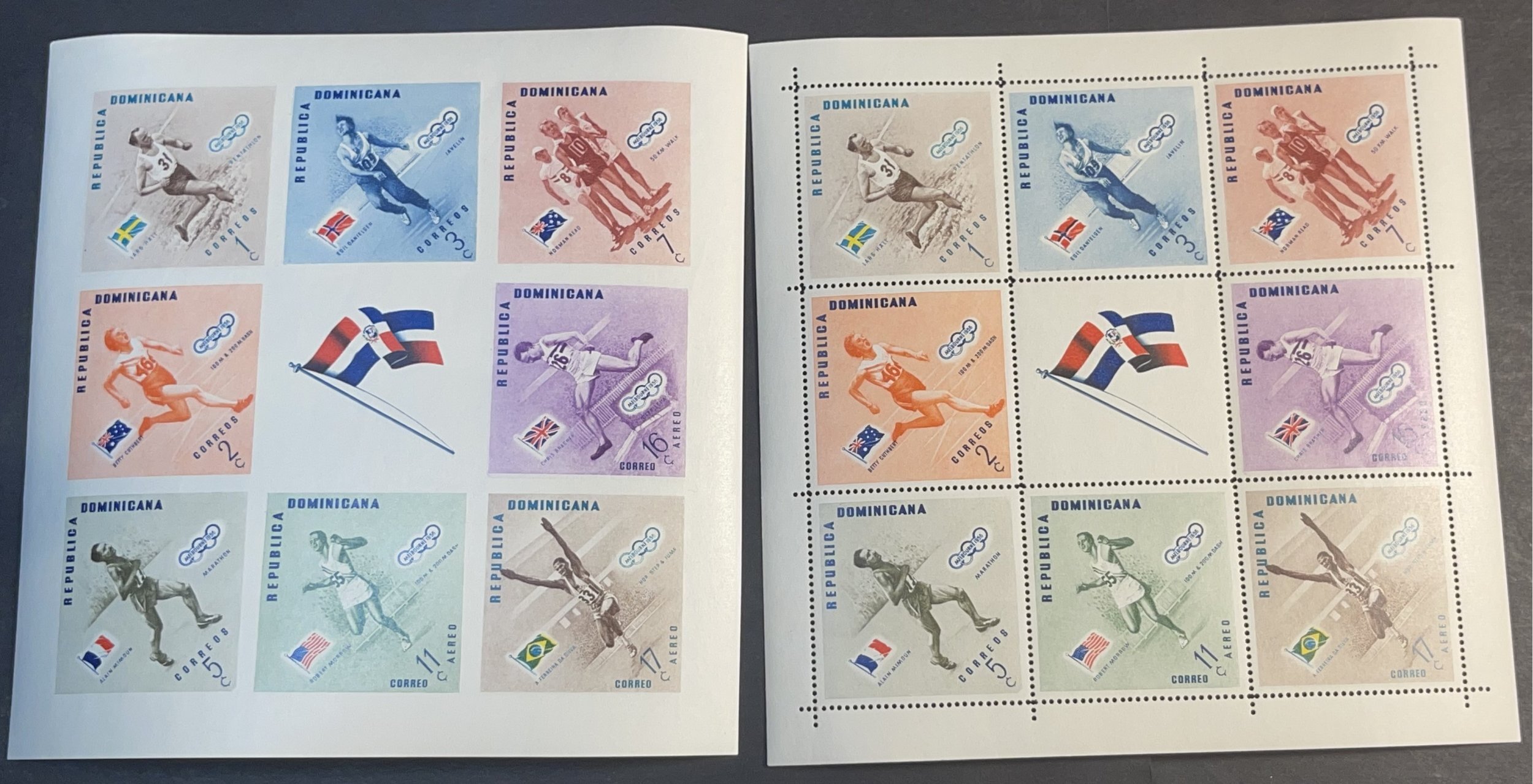 D.R. # 479-483 & C100-C102-MNH-PERF & IMPERF-MINI-SHEETS-REVERSE FLAG ERROR-1957