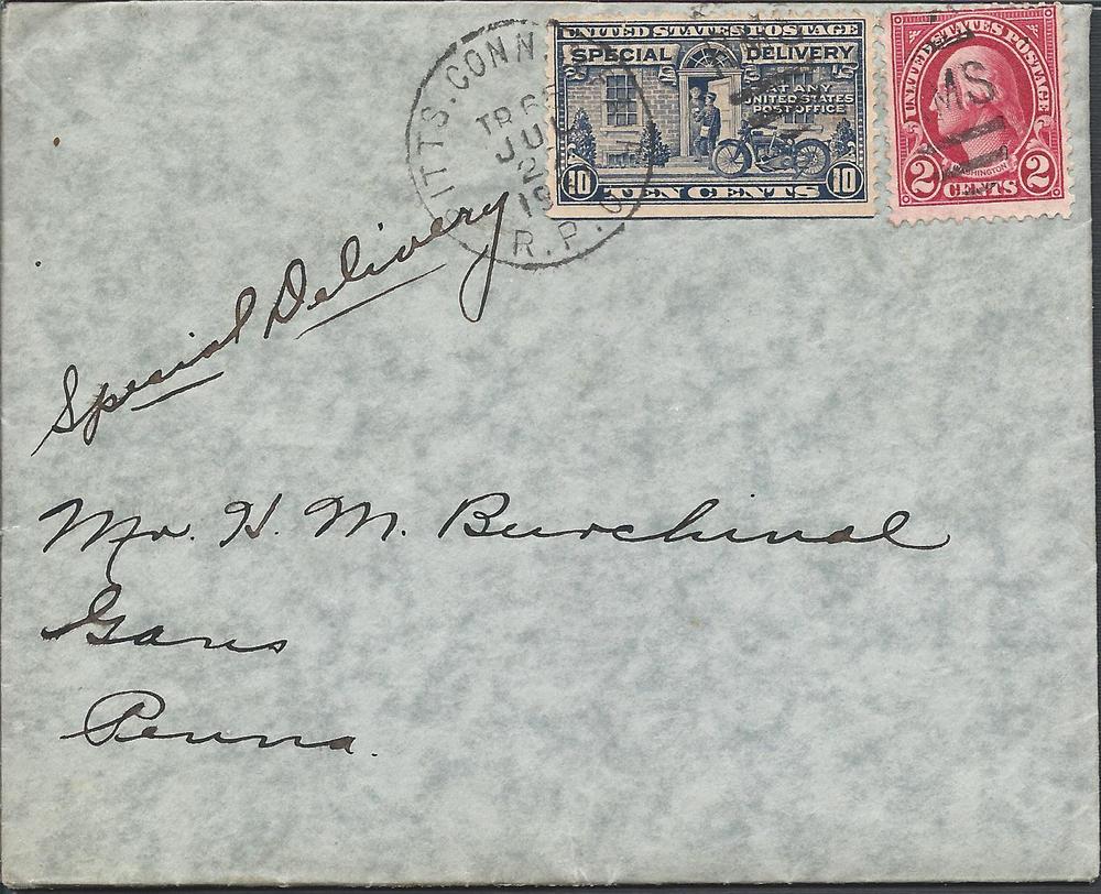 E12, 554, Special Delivery, Special Delivery Issues, Tied by Pitts & Conn. RPO, not listed in Vol III of The United States Transit Markings Cat, addr Gans PA, FineSeller Information