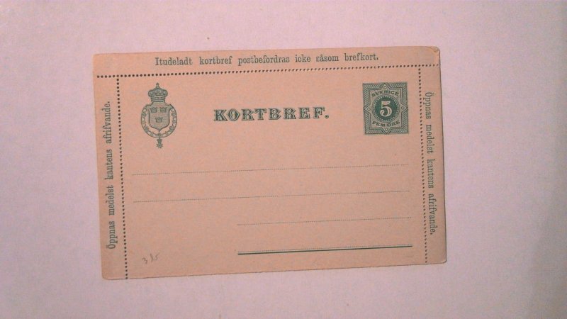 EARLY SWEDEN LETTER CARD MINT ENTIRE