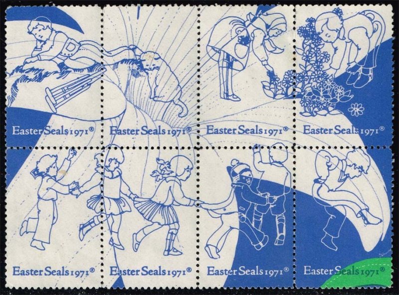 Partial sheet - block of 8 unused Easter Seals from 1971Faults/Considerations: Damaged gum. Some light creasing. Folded perfs.