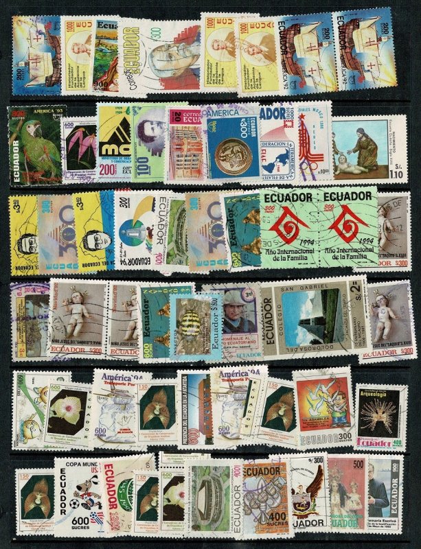 A colorful batch of modern issues from Ecuador off paper. Mostly 1990s to 2000s. From a huge hoard from a charity that did extensive work with Latin American missions. I'm starting these under 20 cents per stamp.Seller Information