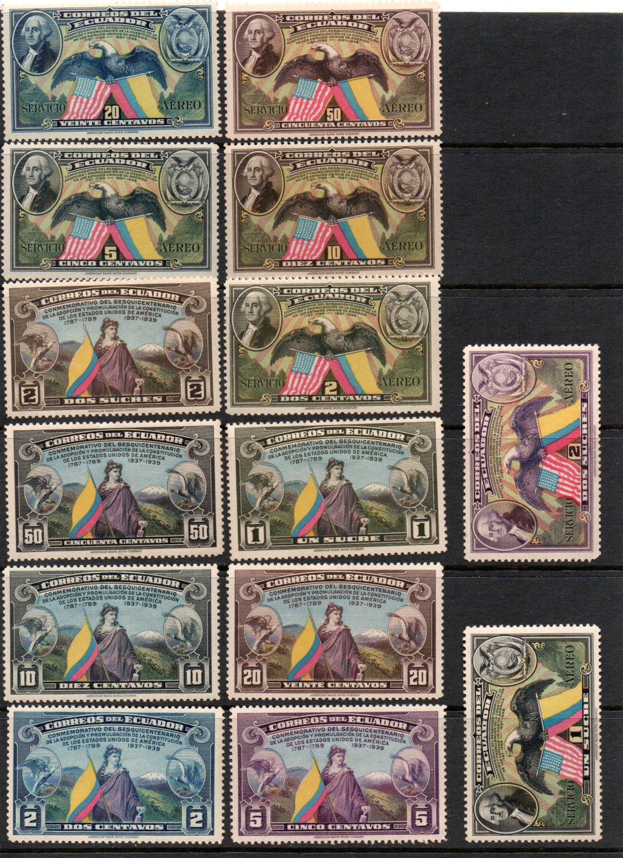 U S Constitution, complete set of 14, mint, hinged, 2017 catalog 22.40Seller Information