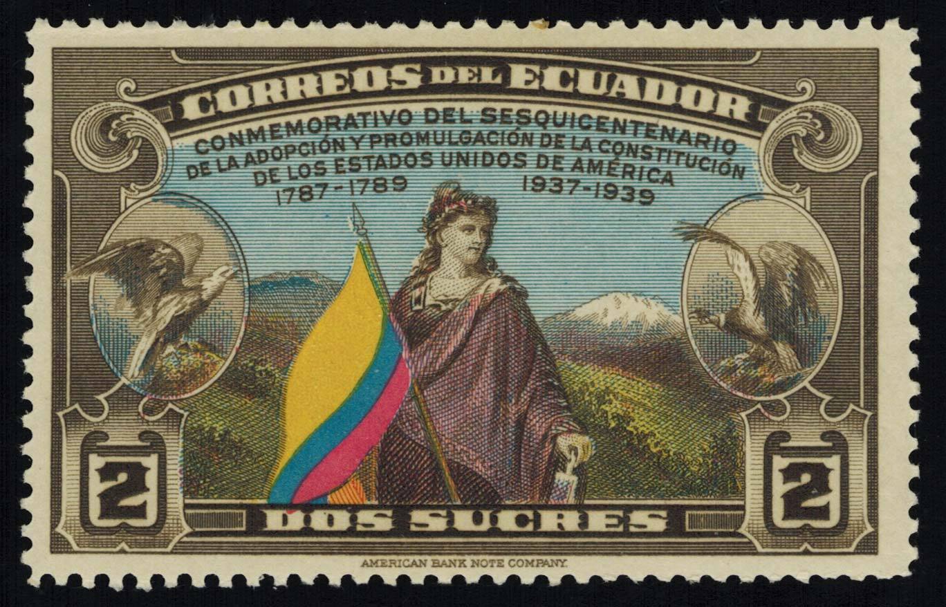 2s Liberty Carrying Flag of Ecuador U.S. Constitution. Unused lightly hinged.