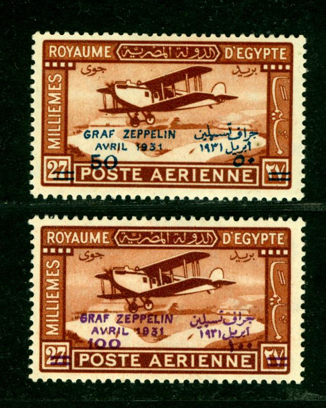 EGYPT 1931 AIRMAIL - ZEPPELIN - surcharged set Scott # C3-C4 mint MLH