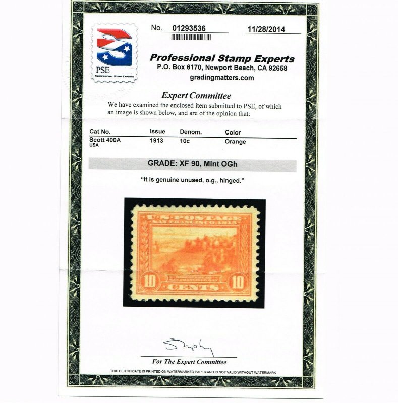 EXCEPTIONAL GENUINE SCOTT #400A MINT OG LH PSE CERT GRADED XF-90 PAN-PACIFIC