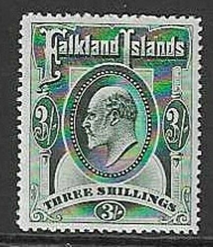 FALKLAND ISLANDS SG49b 1907 3/- DEEP GREEN LIGHTLY MTD MINT