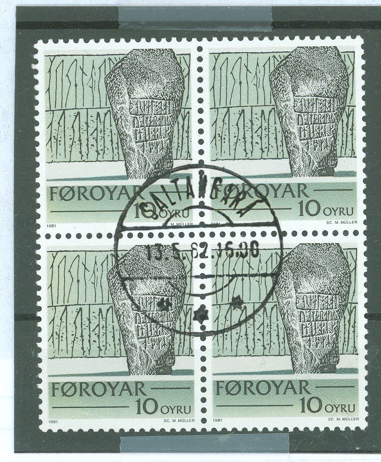 1981 Viking writing on stone; block of 4 w/a nice centered cancel. APS Stamp Id: 501406255 APS Seller Id: 638656 Hinge Type: NH