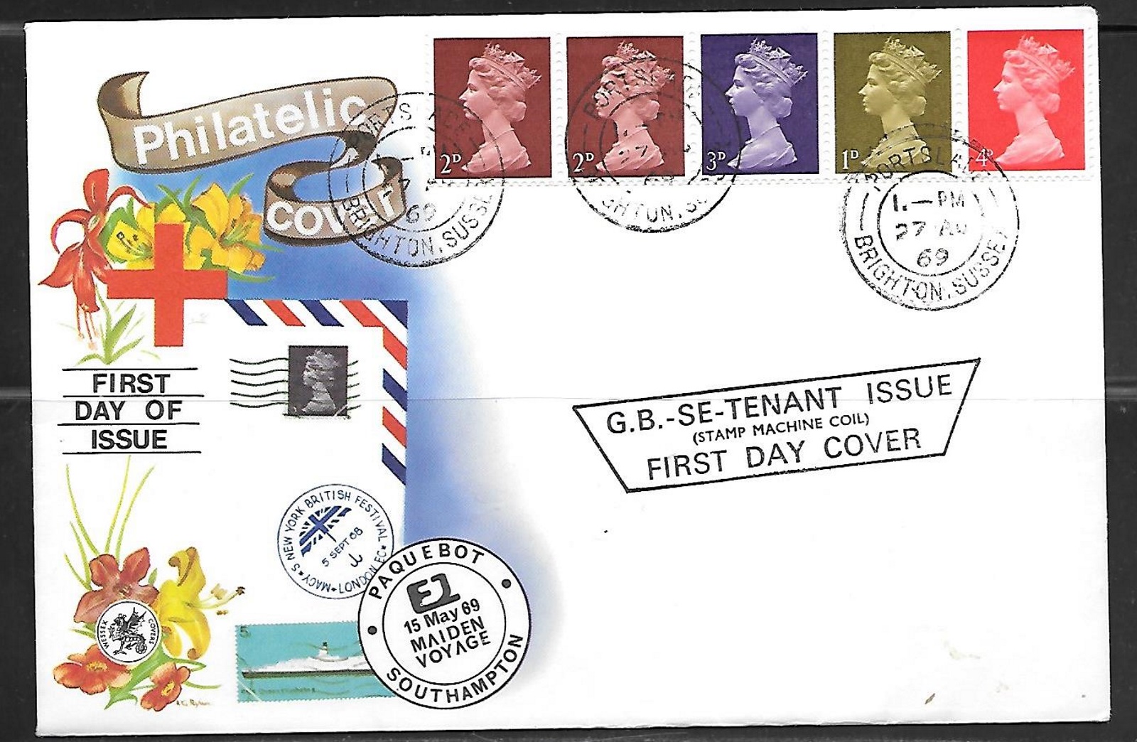 FDC 1969 UK, 27 Aug 69, Machin se-tenant issue