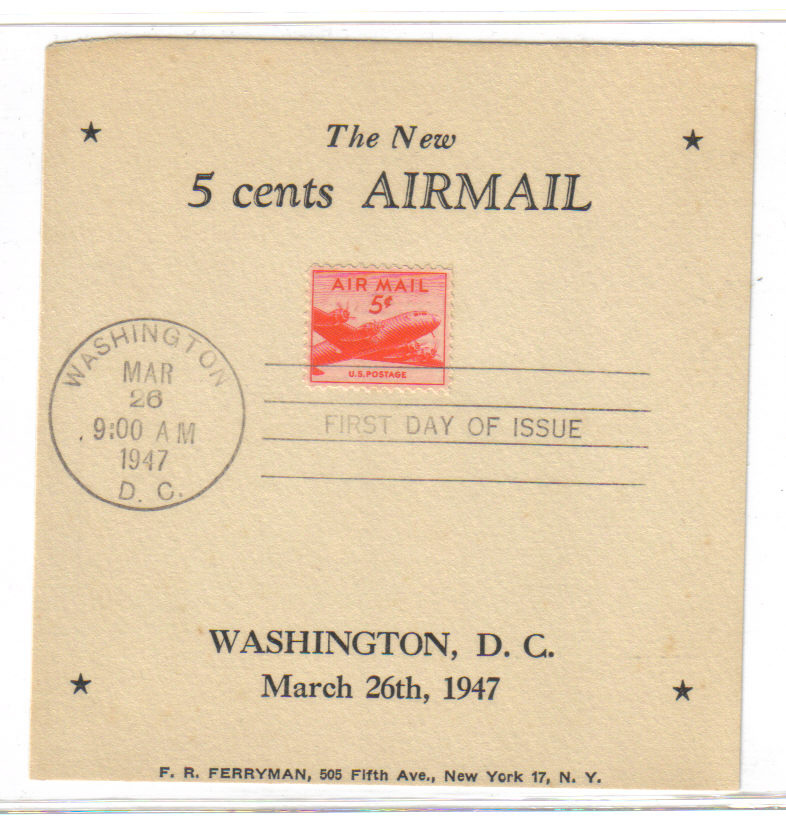 ferrymans 5 cent air mail card fdc