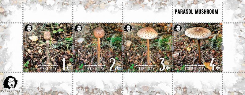 Finland 2021 Parasol mushroom a delicacy of gastronomy Peterspost Perforated set of 4 stamps in block MNHSeller Information