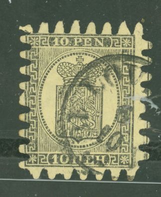 1870 10p black, yellow, part date cancel, pencil notation on back APS Stamp Id: 501901338 APS Seller Id: 575340 Hinge Type: H