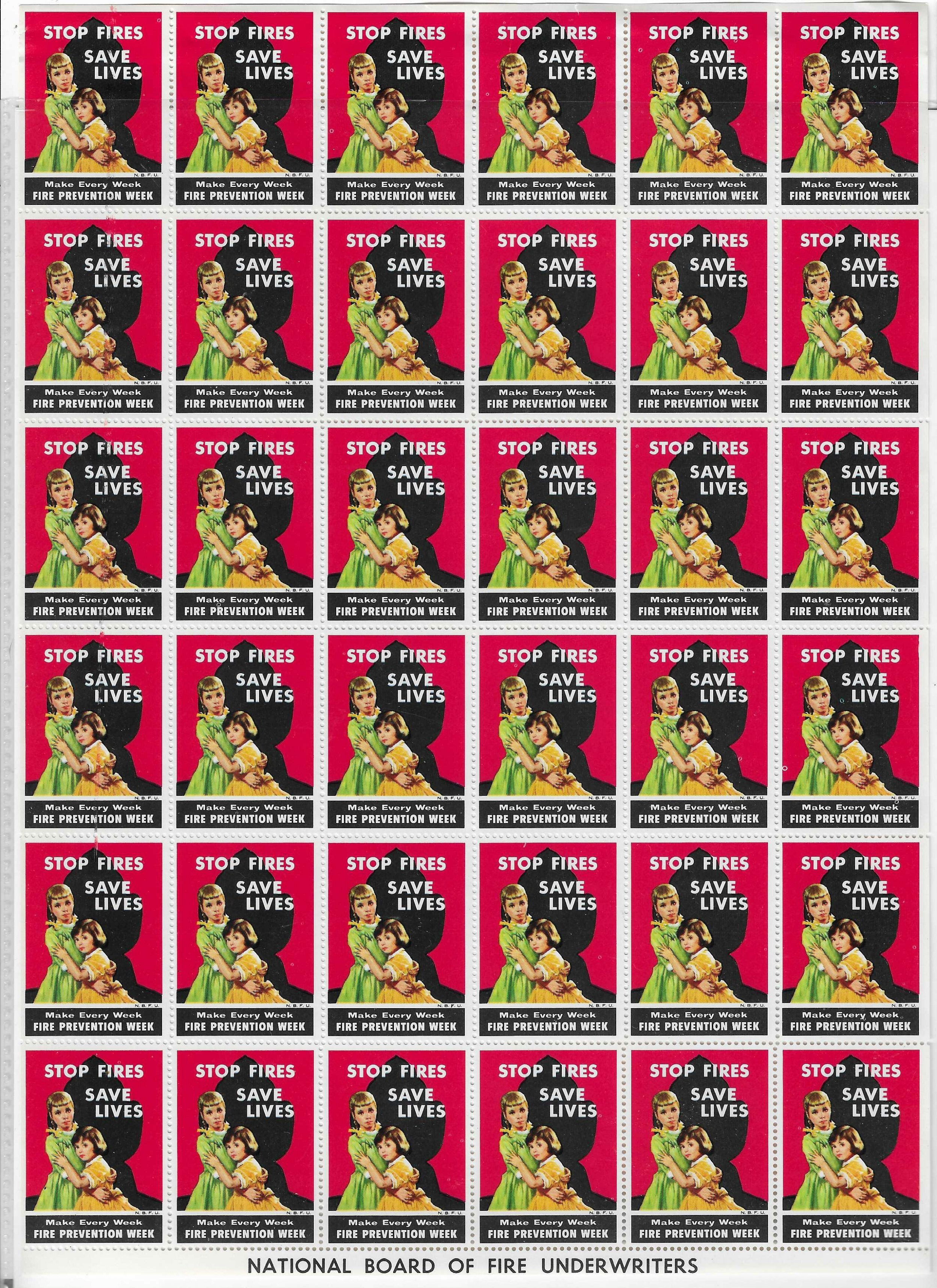 FIRE PREVENTION WEEK POSTER STAMPS FULL SHEET
