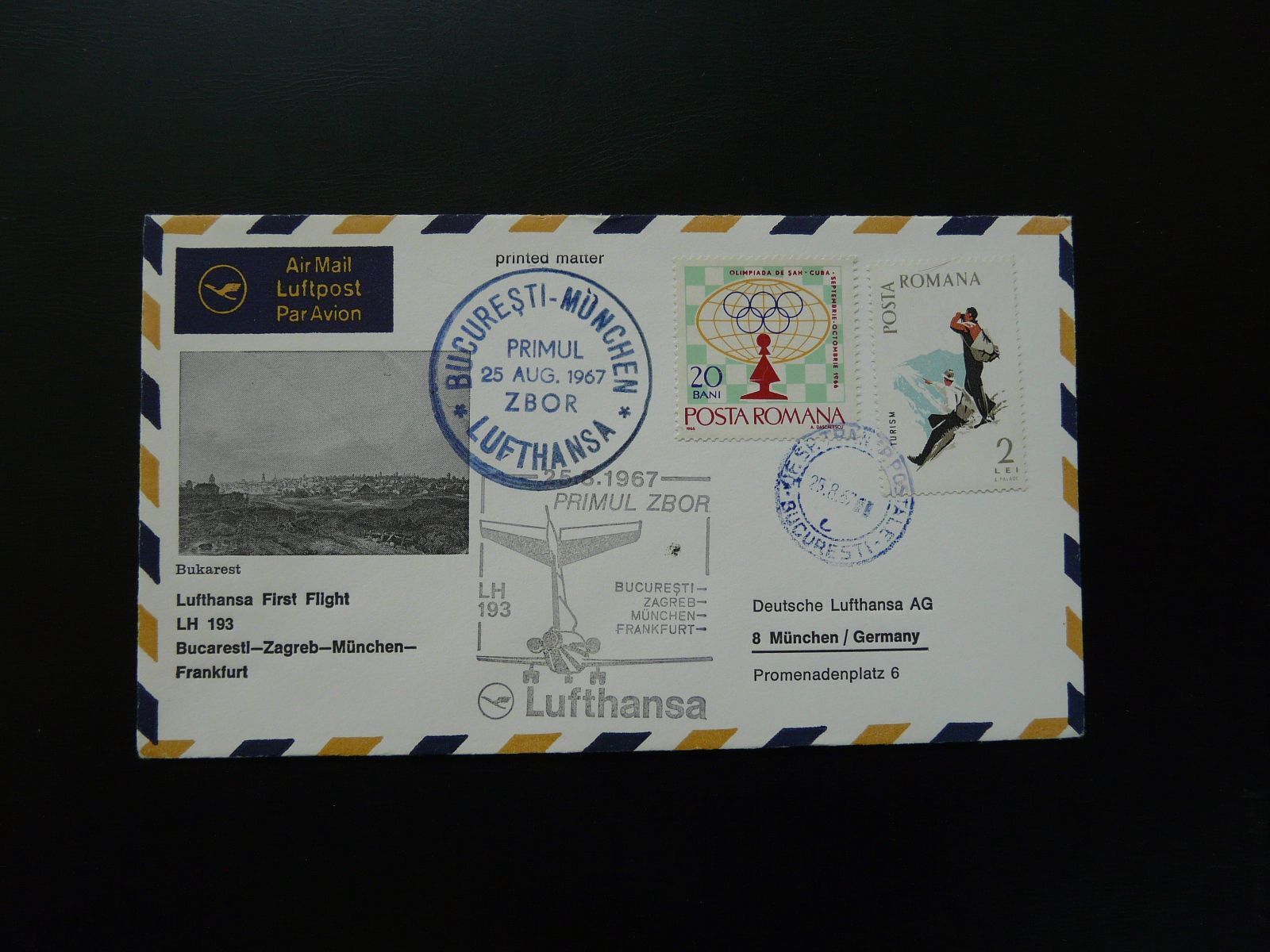 first flight cover Bucharest Munchen Lufthansa 1967