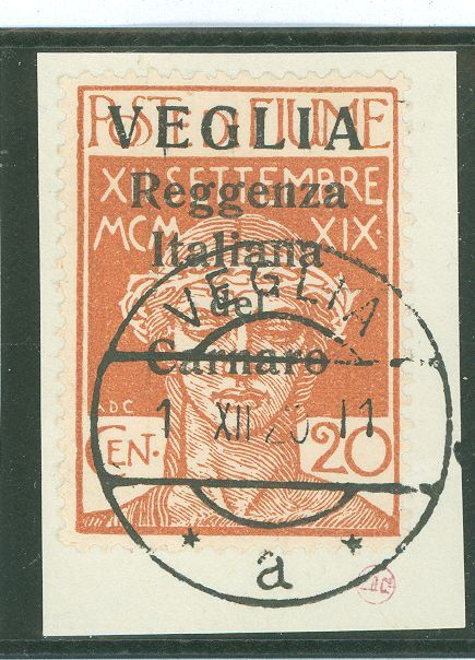 1920 on piece, "Veglia" 19mm wide. APS Stamp Id: 501796689 APS Seller Id: 602546 Hinge Type: Not Specified Other Catalog Name: Scott Classic