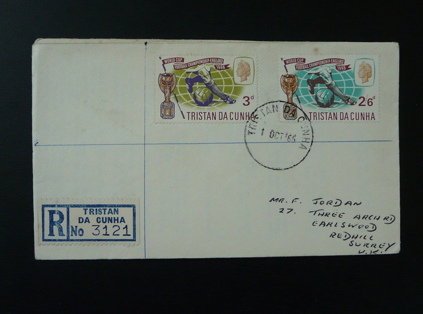 football world cup 1966 registered FDC Tristan Da Cunha