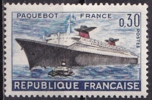 France 1018 (mnh, lt gum toning) 30c ocean liner, SS France (1962)