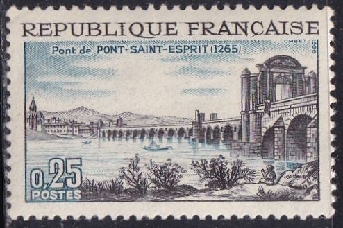 France 1155 (mnh) 25c Rhone Bridge, Pont-Saint-Esprit, black & dl blue (1966)