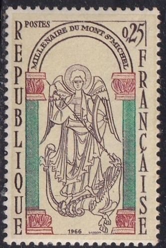 France 1156 (mnh) 25c Mont-Saint-Michel: St. Michael slaying the dragon (1966)