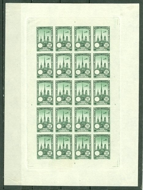 FRANCE 1922 "ROUEN AVIATION MEETING" IMPERF SEMI-OFF SHEET of (20) COLOR TRIALS