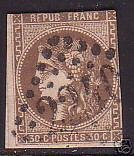 France, Scott #46, 1870 Bordeaux issue in Used condition.Scott 2026 Catalogue Value $200.00
