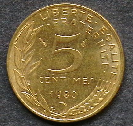 France - 5 Centimes - 1980