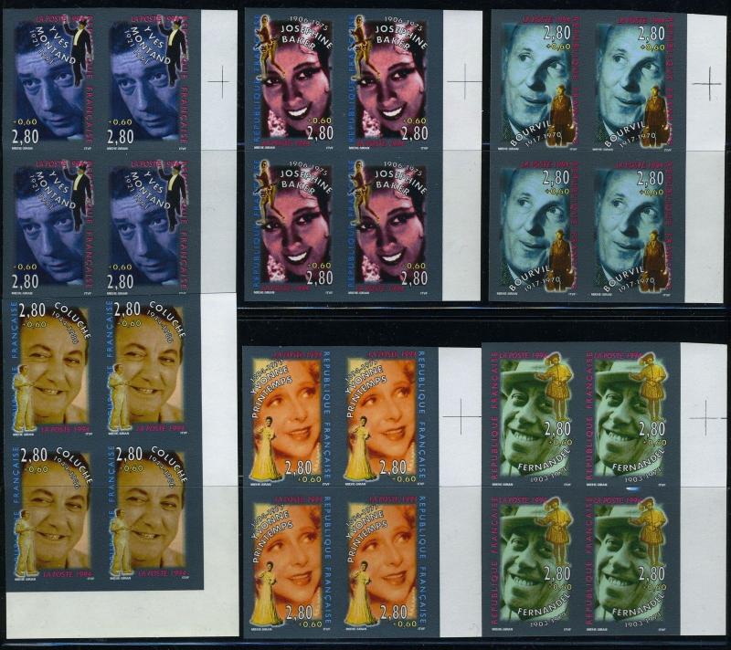 France sc# b656-61 yv# 2897-2902 imperforated blocks of four mint nh as shown. Yvert price is 500 euros