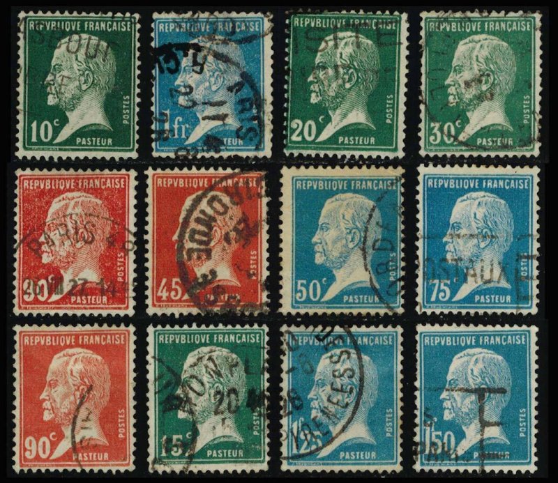10c, 15c, 20c, 30c Red, 30c Green, 45c, 50c, 75c, 90c,, 1F, 1.25F and 1.50F Pasteur. Used.Seller Information