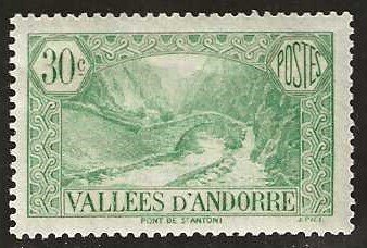 French Andorra 32, Mint, hinged,1932, Catalog value $ 4.75.