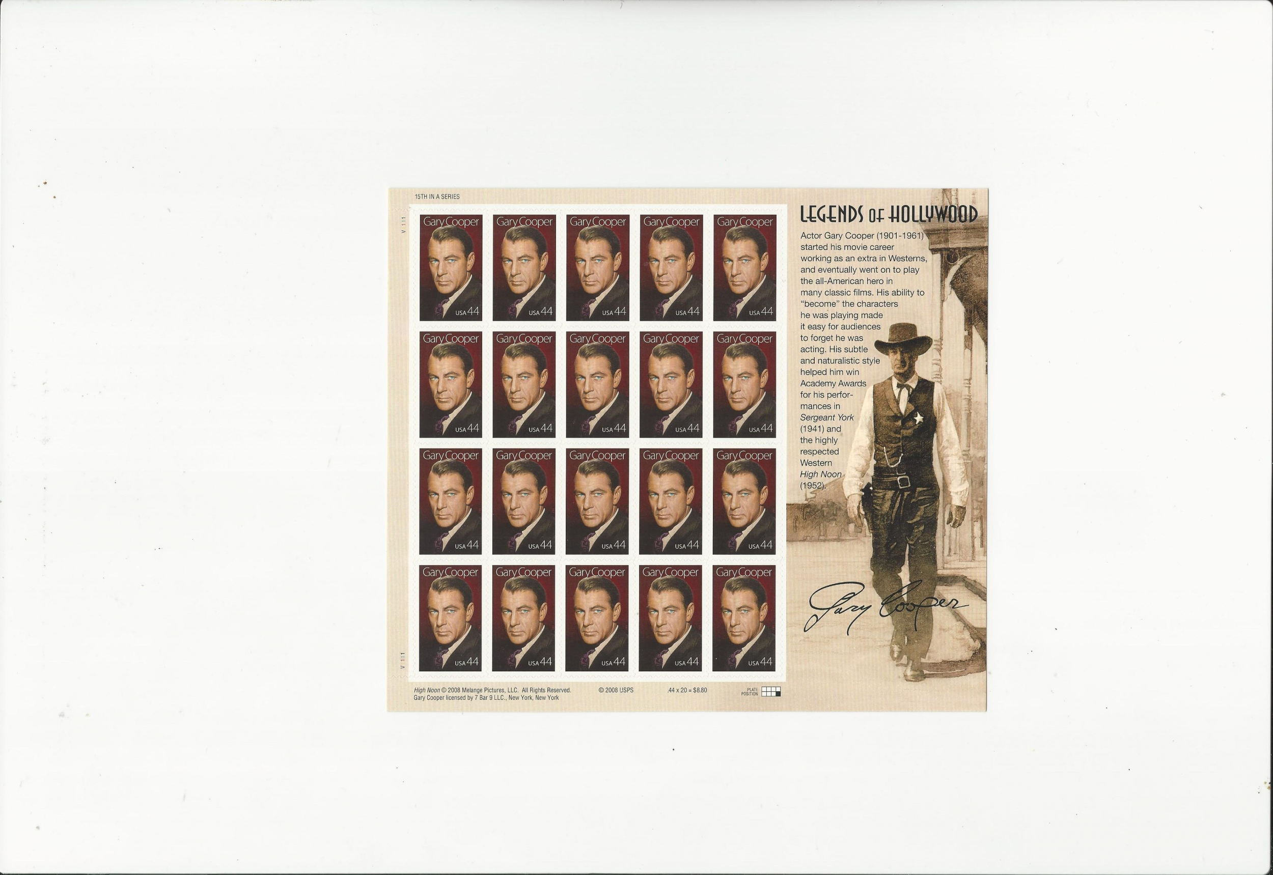 Gary Cooper Scott #4421 MNH F-VF OG Post Office fresh 20 X 44 cents F$V8.80Seller Information
