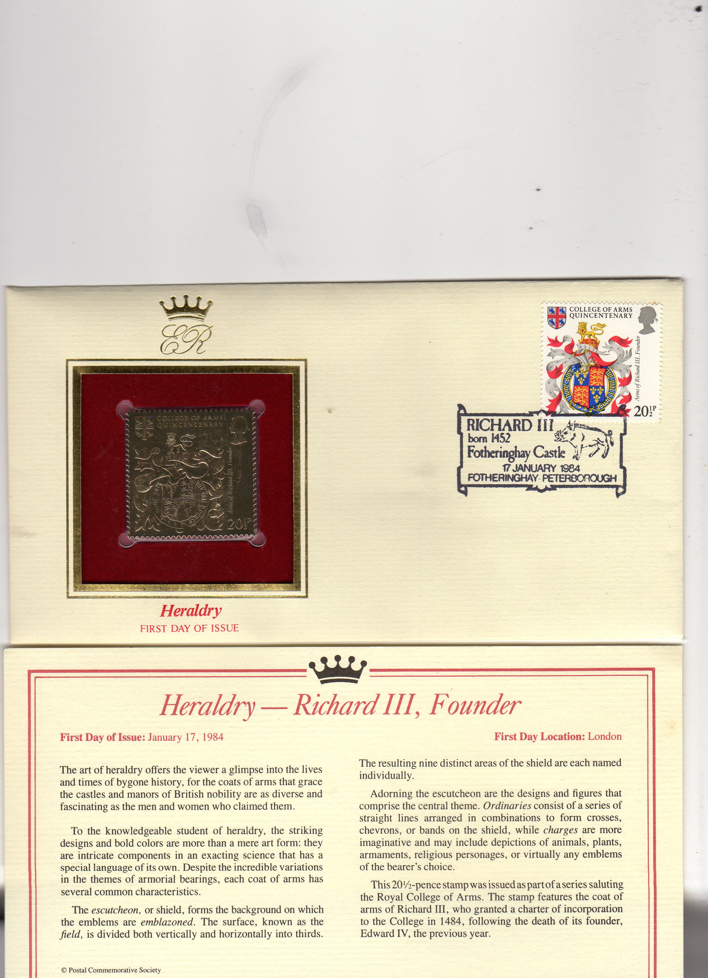 GB 1984 Gold Stamp FDC Richard lll FounderSeller Information