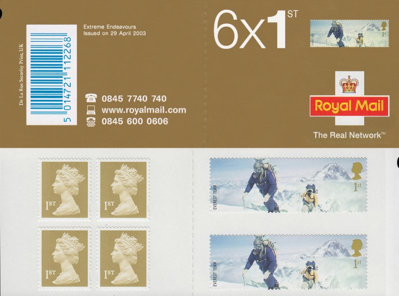 Picture is only a sample, actual items may differ. Booklet: PM9 Date: Apr 29/2003 Value: 6 x 1st Printer: De La Rue Extreme Endeavours