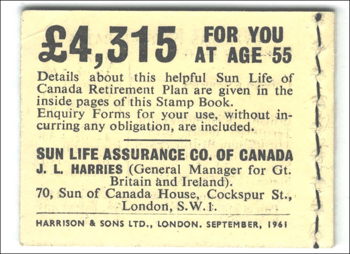 Grade: Fine GB Booklets N5 2s September 1961 [ref Hip/ l/e4272]