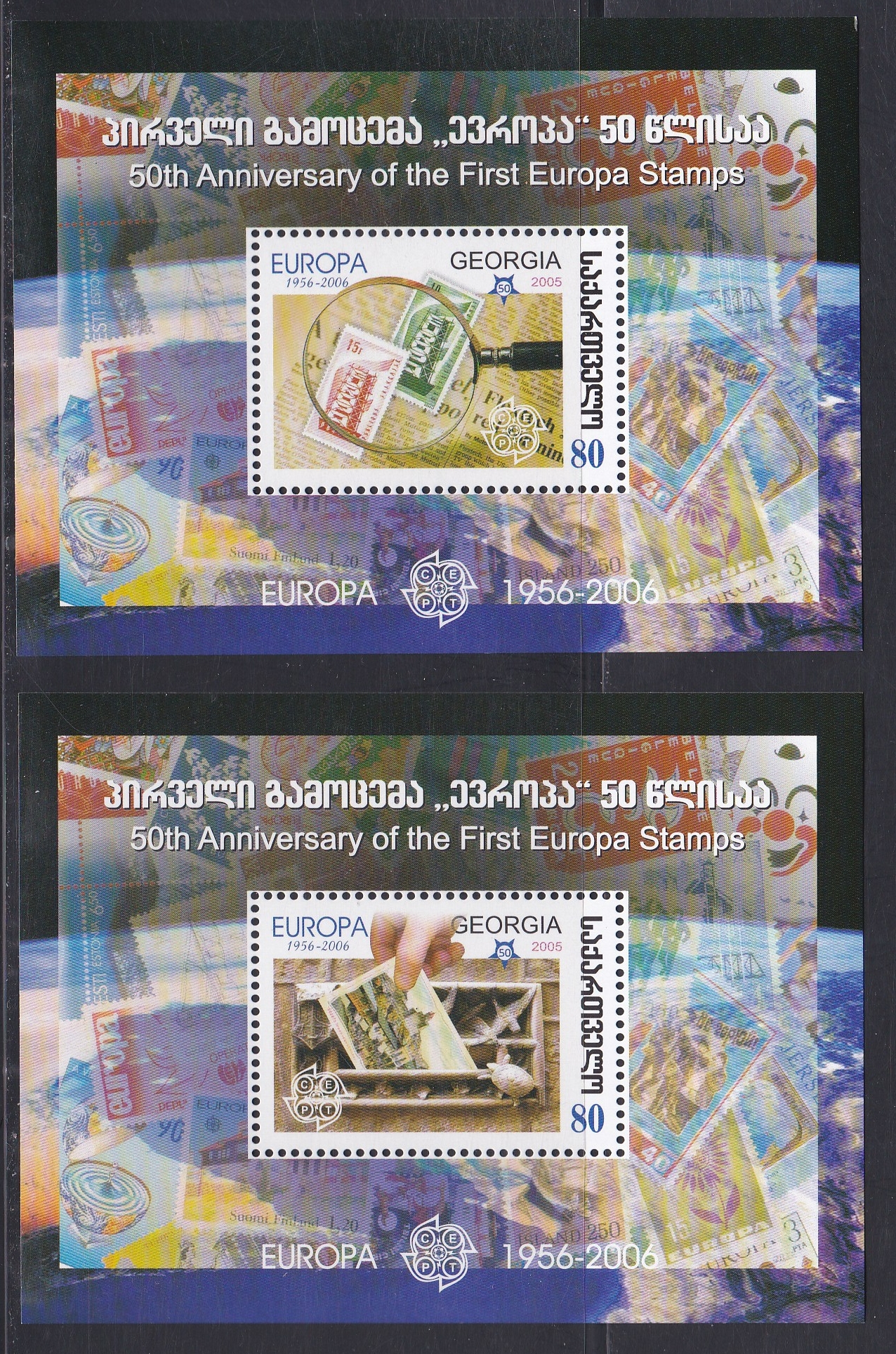 Georgia: Scott catalogue #394-397, a complete set of souvenir sheets, mint never higed. Catalogue value is $ 12.50. Selling at 1/3 of catalogue value.