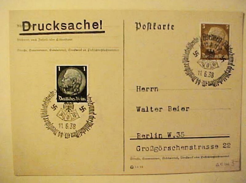 German 1938 jr-d-jp. Fine condition. Shipping and handling $1.50 usa, international $3.75 multiple winning bids can combine to save postage. Calif. Buyers please add 9.50 % sales tax. We ship around the world. ======= if you need the pictures or images please scan before the auction ended to have your own reference or copy. Thank you. ====if you buy multiple items on buy it now. Try this for shipping total purposes:when you go to the cart to pay in Hip you will see all the items from a single store (e.G. Yours) one below the other, at the top of the first item there is a link that says request total. If you click on this, it links all the item together and then send the request for an invoice to the seller. For international buyers please try to log in us Hip.It will work for total request.
