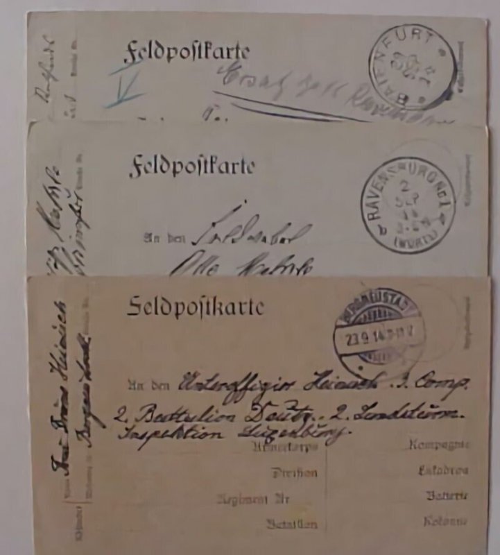 Condition: FINE Grade: NONE Germany 1914 feldpost 3 diff fine condition. Shipping and handling $1.50 usa, international $3.25 multiple winning bids can combine to save postage. Calif. Buyers please add 9.50 % sal ... Read More