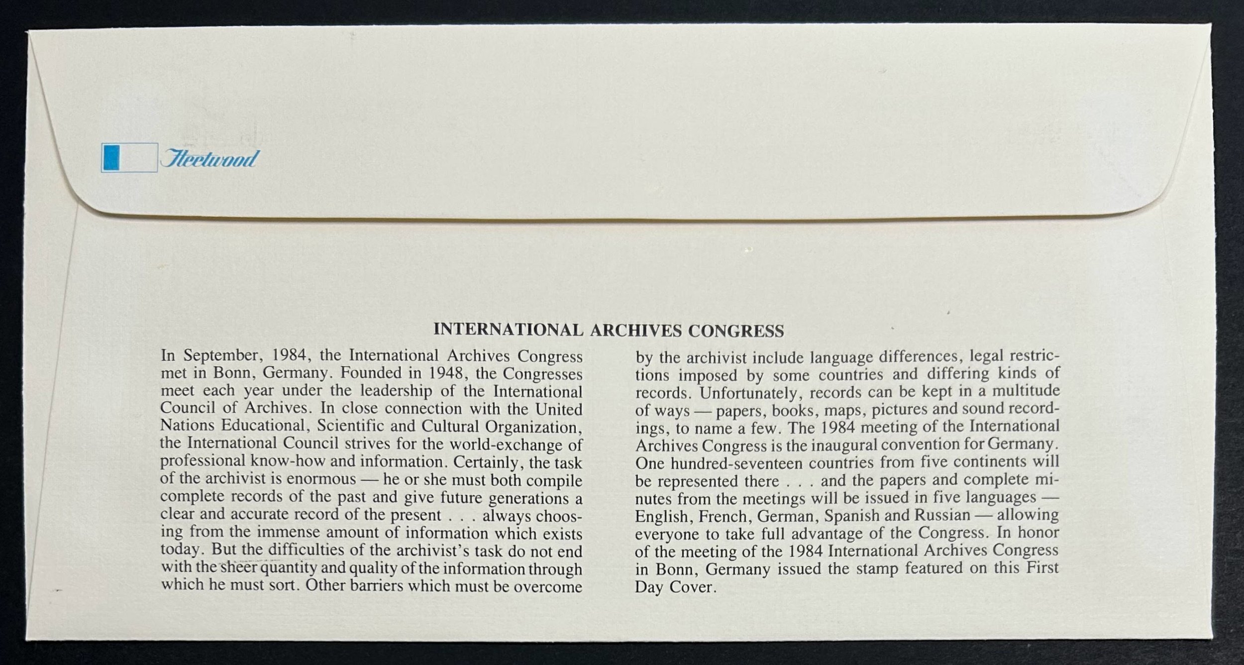 SC#1425 was issued Aug 21st, 70 pf, multicolor, 14 Perf, Lithograph. 10th International Archives Congress. Please see our about us page for more information.