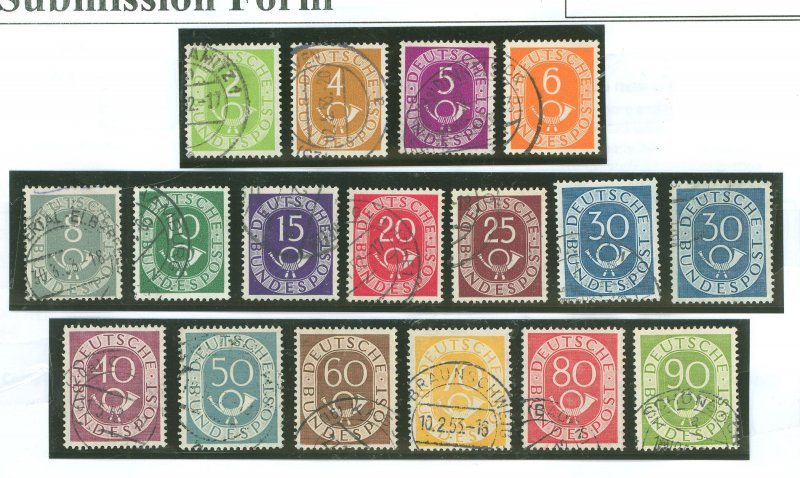 1951-3 Post horns definitives Nice clean used set, some full cds cancels. Faultless. Duplicate Sc. 679APS Stamp Id: 501801221