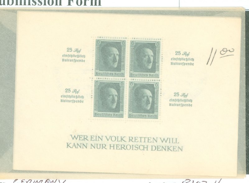 1937 Hitler's 48th Birthday. B102, 3 ceremonial cancels. B104 some paper on back. Catalog value as hinged. B102-3 Mint, NH. APS Stamp Id: 502011796 APS Seller Id: 514583 Hinge Type: H Other Catalog Name: Scott ... Read More
