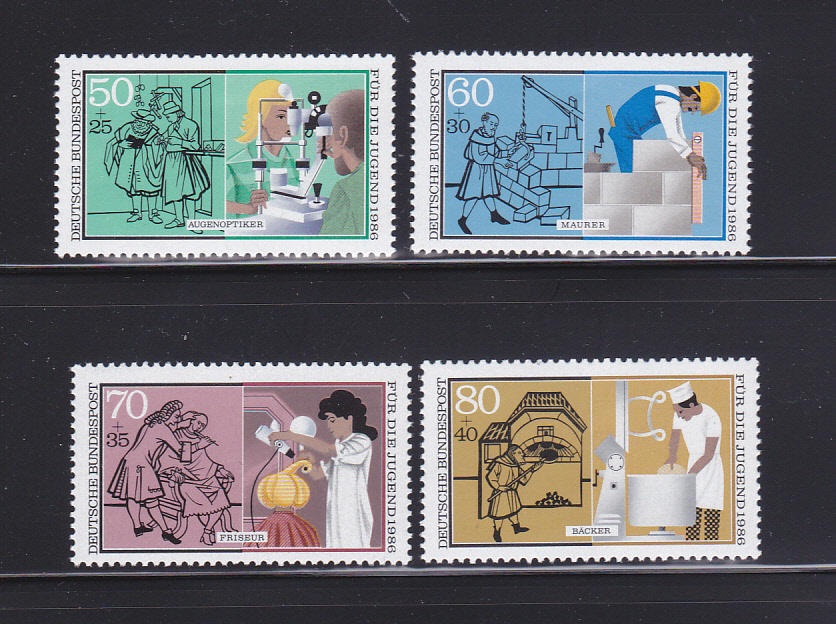 Germany Scott Catalog Number: B643-B646 Complete SET Condition: MINT NEVER HINGED Topic: OCCUPATIONS I AM A MEMBER OF THE APS MEMBER NUMBER 194802. Total Satisfaction Is Always Guaranteed.