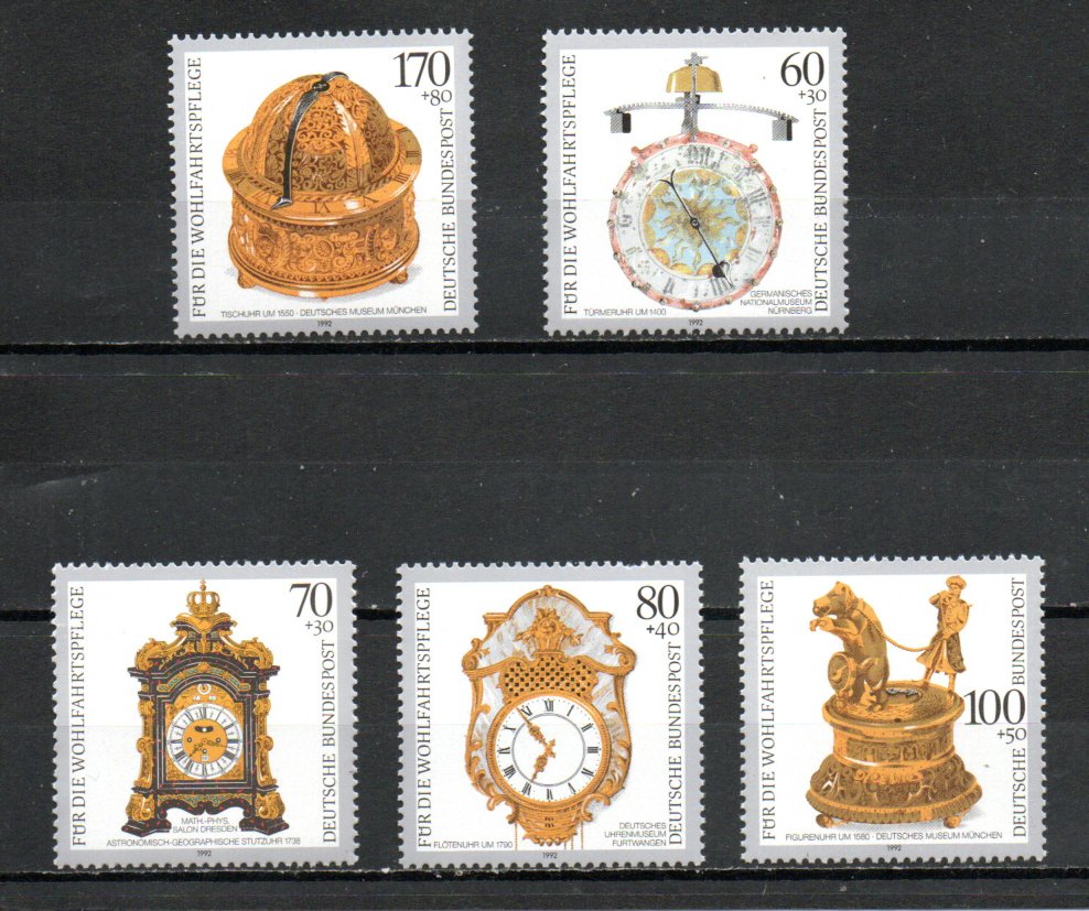 Clocks, set of five, mint, never hinged, 2020 catalog 6.80
