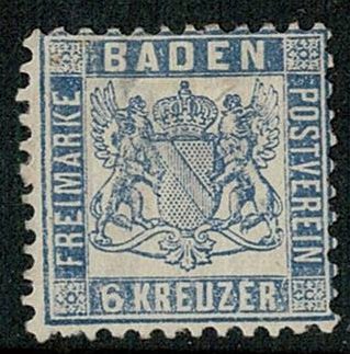 Germany Baden #22 used with small thin (under 2x2mm). 2021 catalog value $11.00.Seller Information