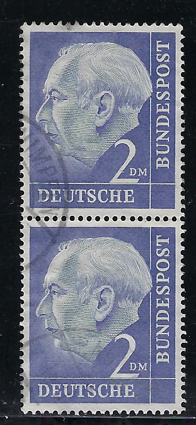 Germany BUND Scott # 720; used, vertical pair; Scott 2017 cv 2.40; You buy according description and scan. WYSIWYG; In case you buy above US $ 100.00 I´ll send FREE as registered mail.
