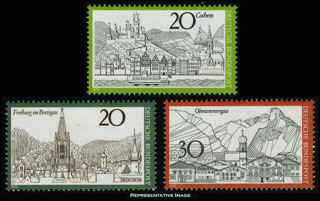 20pf View of Cochem and Moselle River, 20pf Cathedral and View of Freiburg im Breisgaur and 30pf View of Oberammergau. Mint never hinged.Seller Information